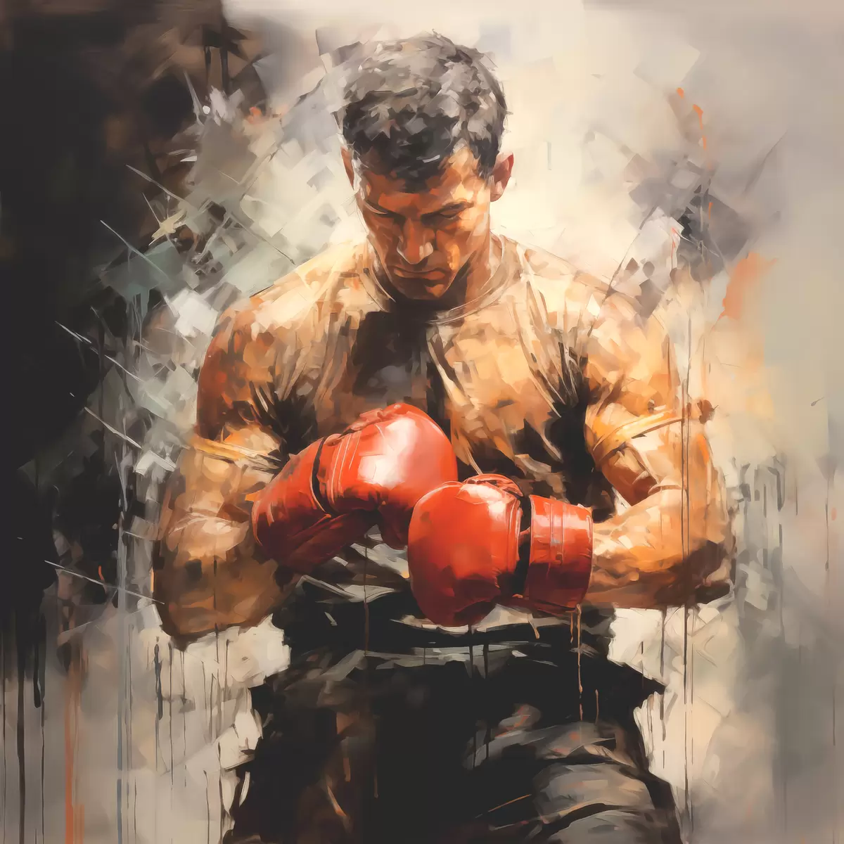 Cuadros Boxeador con guantes rojos pintura al óleo Nr s39180