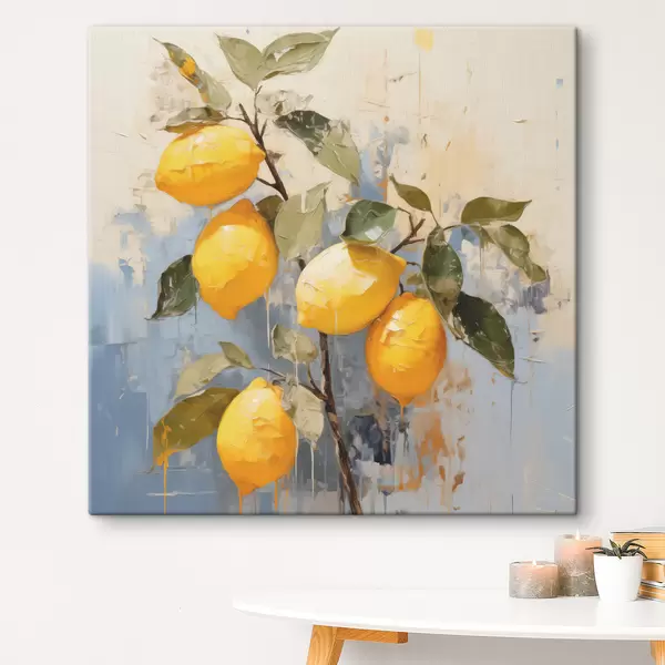 Cuadros Rama con limones maduros pintura al óleo arte abstracto, color amarillo, azul y verde Nr s39186