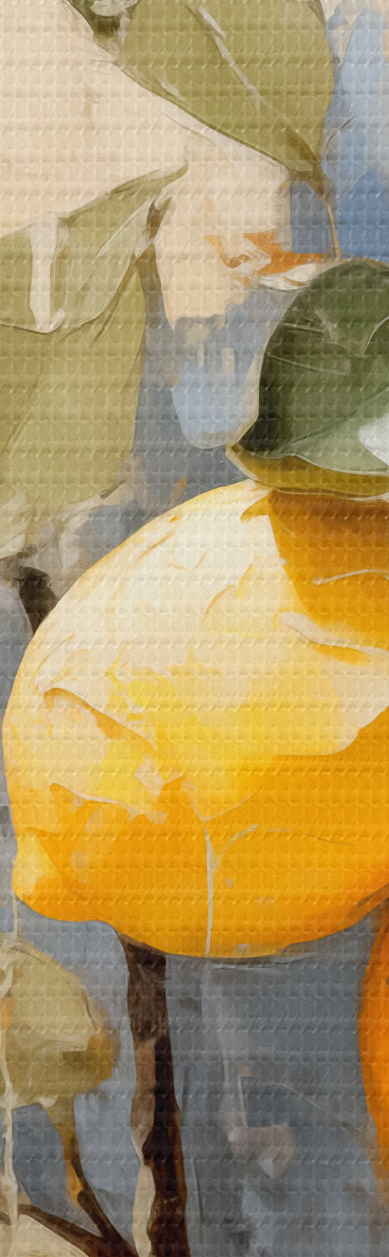 murales de pared Rama con limones maduros pintura al óleo arte abstracto, color amarillo, azul y verde s39186