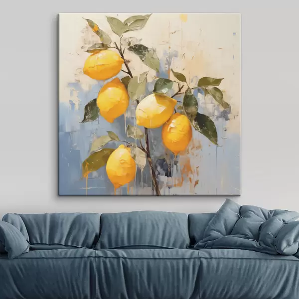 Cuadros Rama con limones maduros pintura al óleo arte abstracto, color amarillo, azul y verde Nr s39186