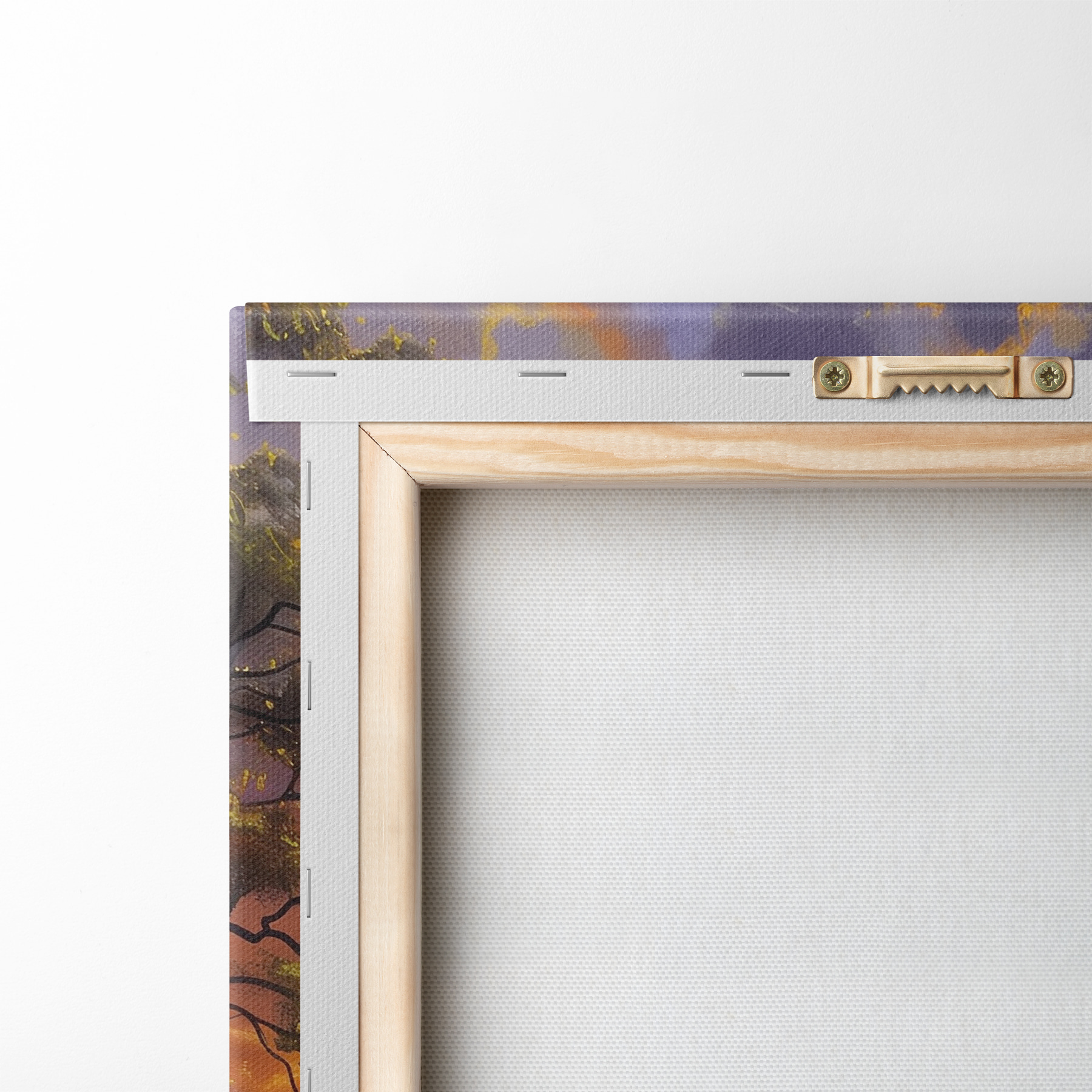 Vendemos cuadros en bastidor: se trata de un marco de madera sobre el que se extiende el lienzo. Este cuadro no necesita marco; puedes colgarlo directamente en la pared.