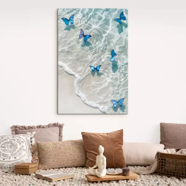 Cuadros Mariposas azules sobre una ola de mar. Nr s39228