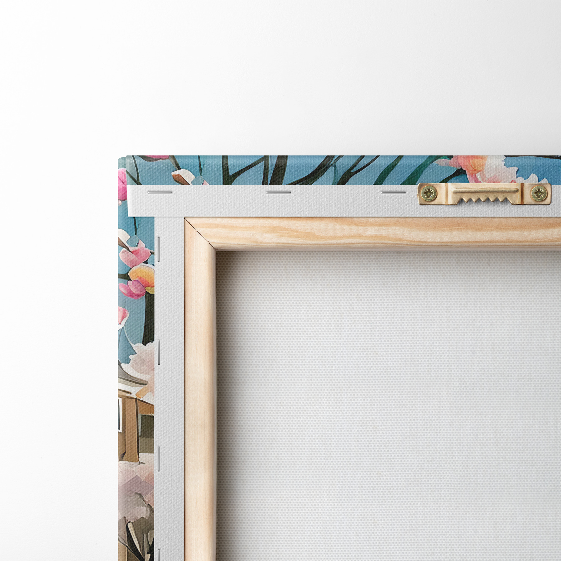 Vendemos cuadros en bastidor: se trata de un marco de madera sobre el que se extiende el lienzo. Este cuadro no necesita marco; puedes colgarlo directamente en la pared.