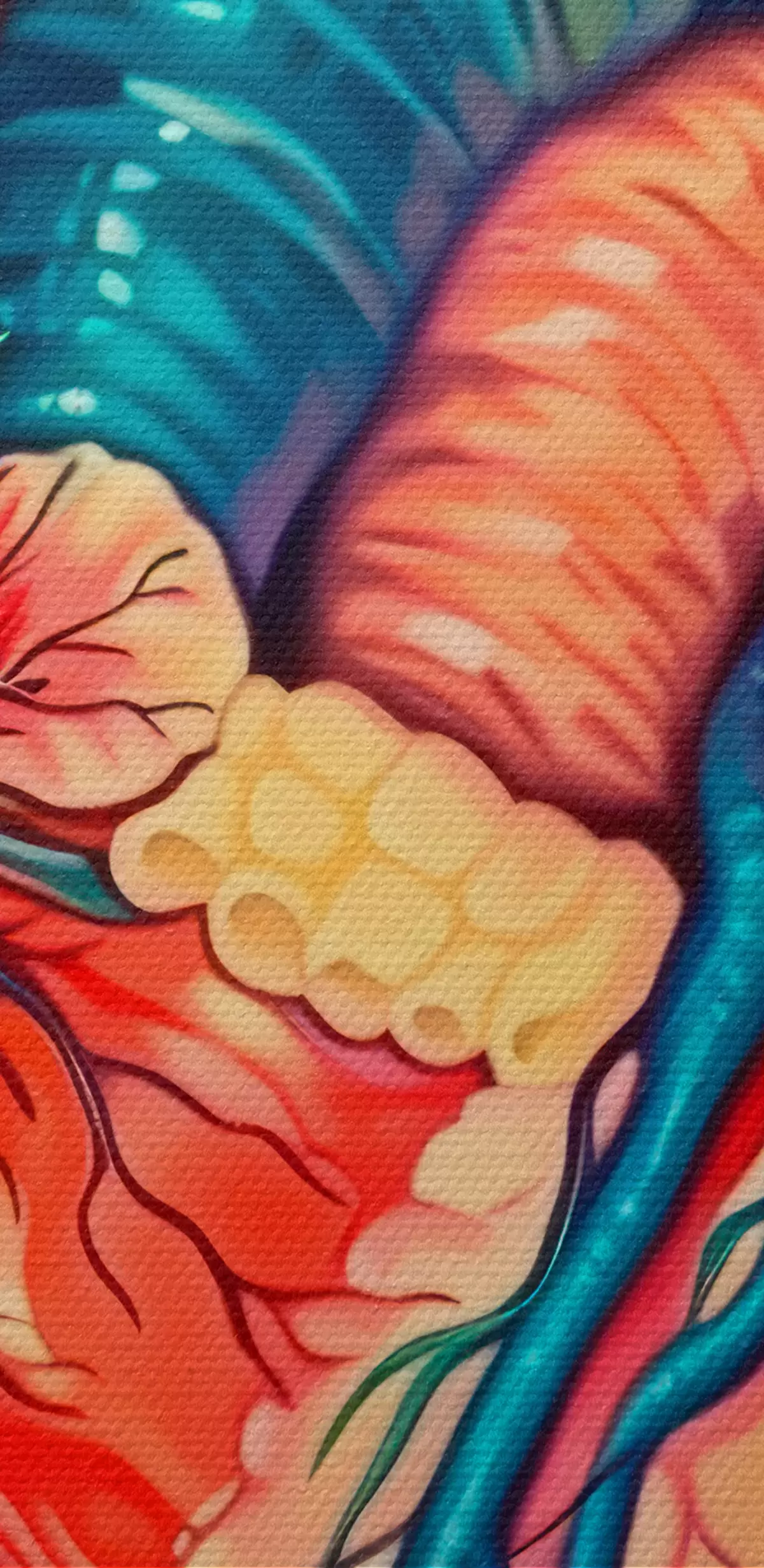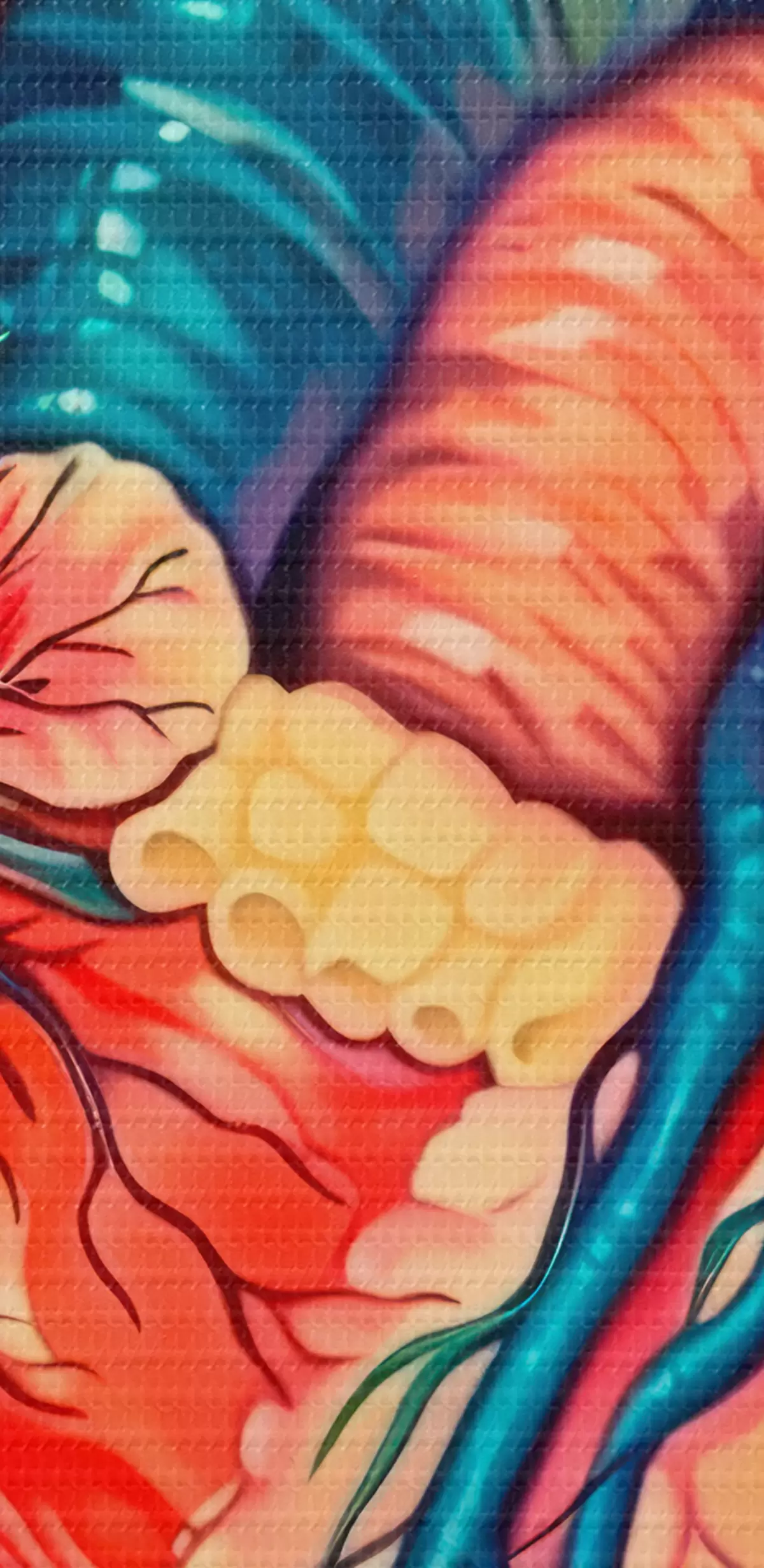 Para estirar el lienzo sobre bastidores sin dañar la imagen, utilizamos imagen reflejada.