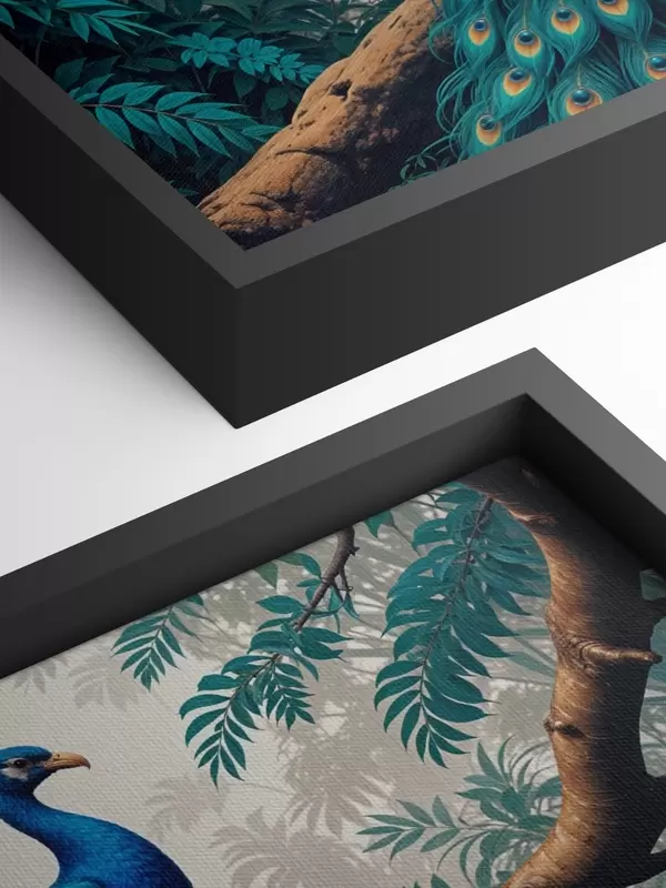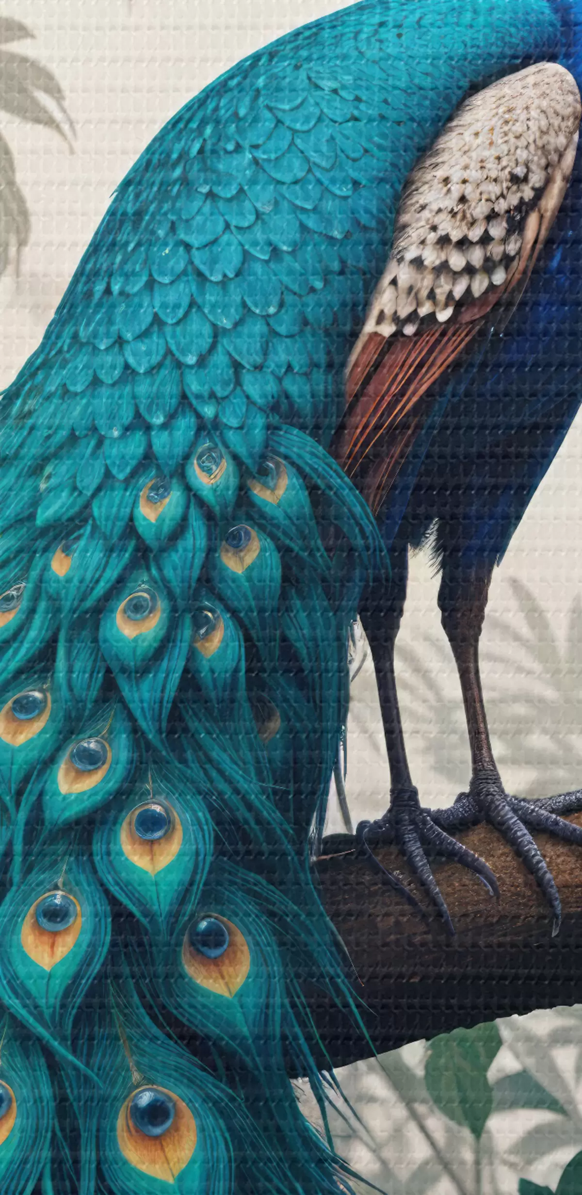 Cuadros Un pavo real azul vibrante posado en la rama de un árbol en un exuberante bosque tropical Nr s39401