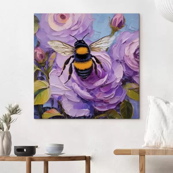 Cuadros Abeja en las peonías rosadas, coloridas flores de verano, pintura al óleo, pinceladas vívidas Nr s39411