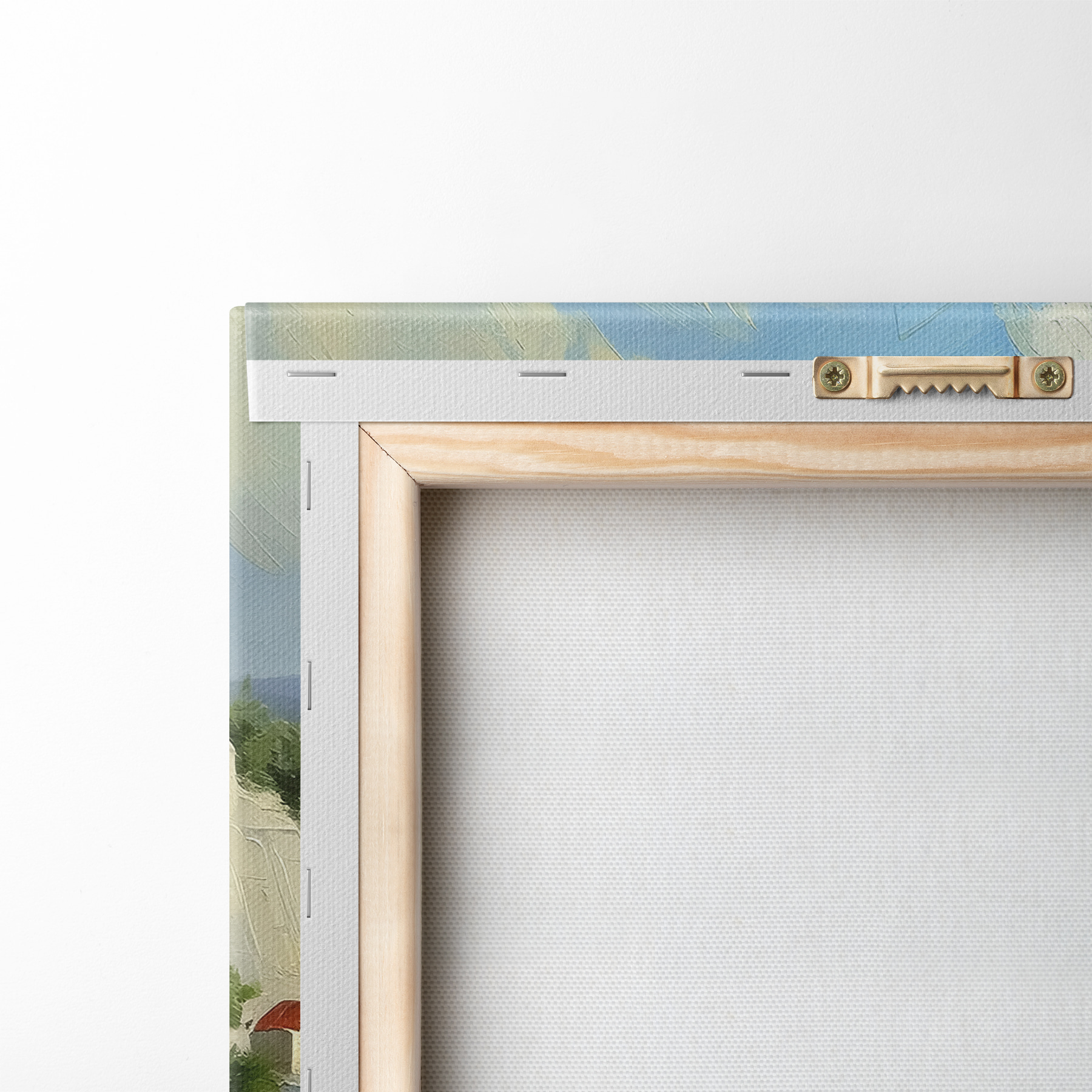 Vendemos cuadros en bastidor: se trata de un marco de madera sobre el que se extiende el lienzo. Este cuadro no necesita marco; puedes colgarlo directamente en la pared.