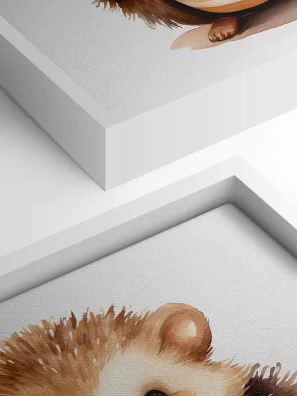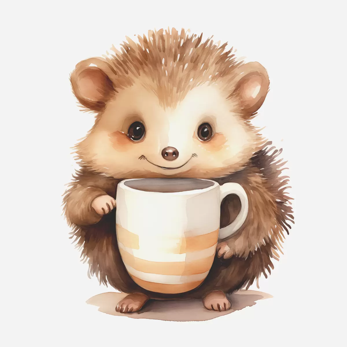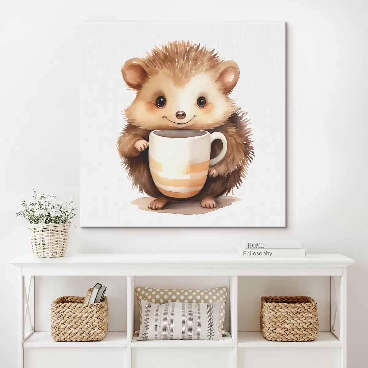 Cuadros Erizo sosteniendo una taza blanca en sus patas ilustración infantil acuarela Nr s39440