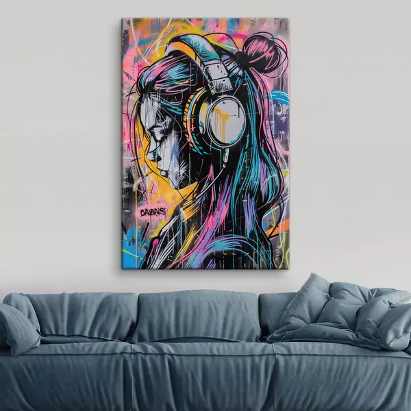 Cuadros Mujer con auriculares en estilo graffiti Nr s39443