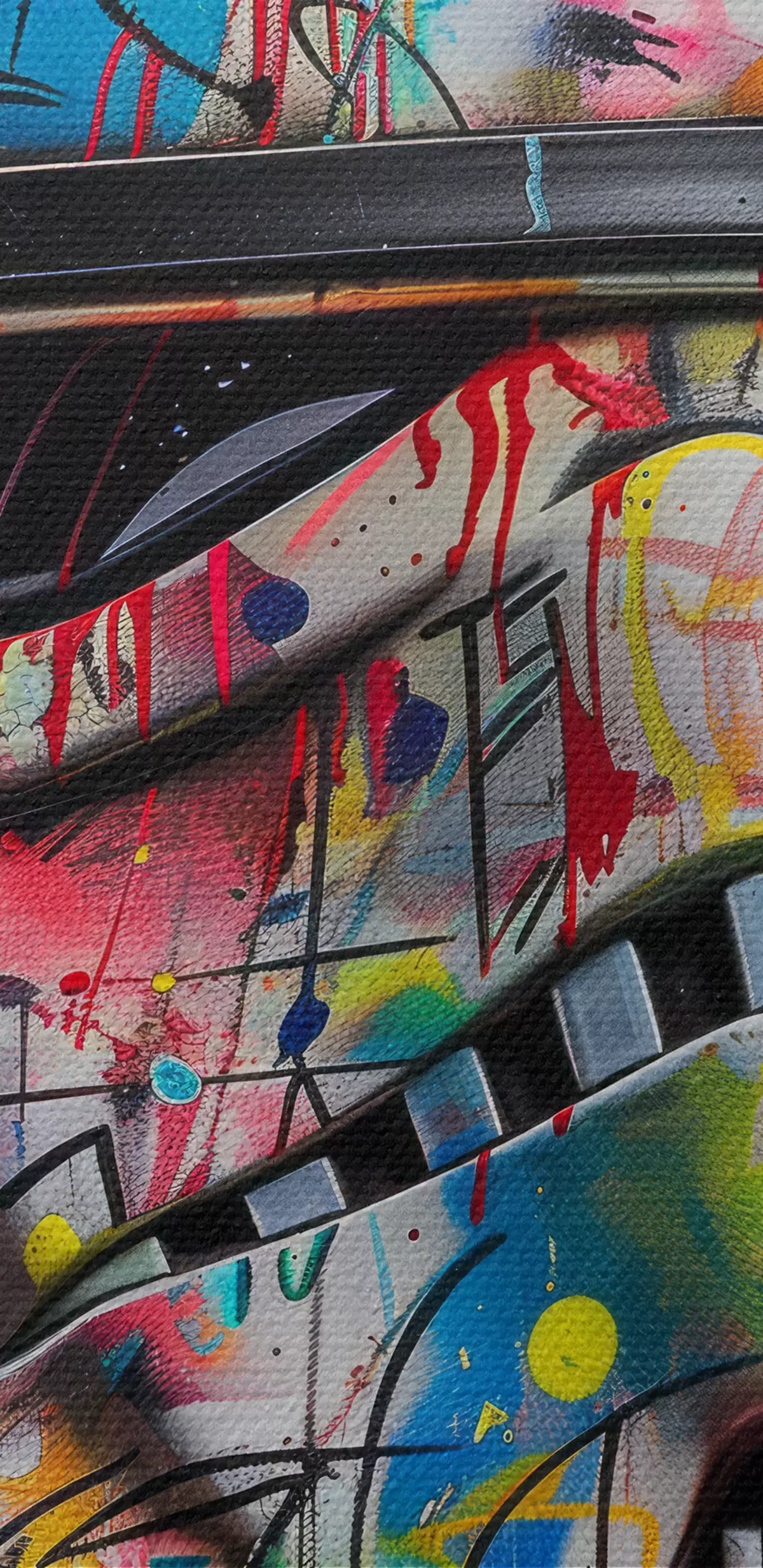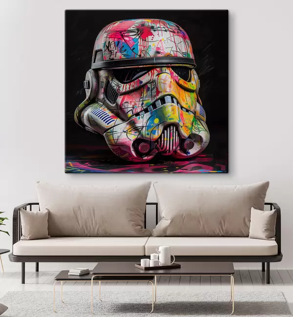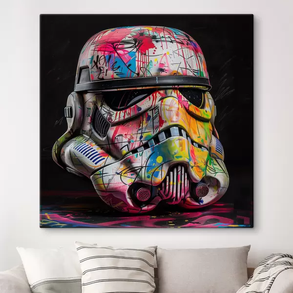 Cuadros Un casco de soldado de asalto de Star Wars cubierto de vibrantes arte callejero y graffiti. Nr s39453