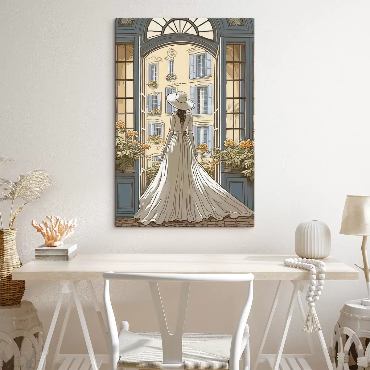 Cuadros silueta de una chica con un vestido blanco junto a la ventana Nr s39479