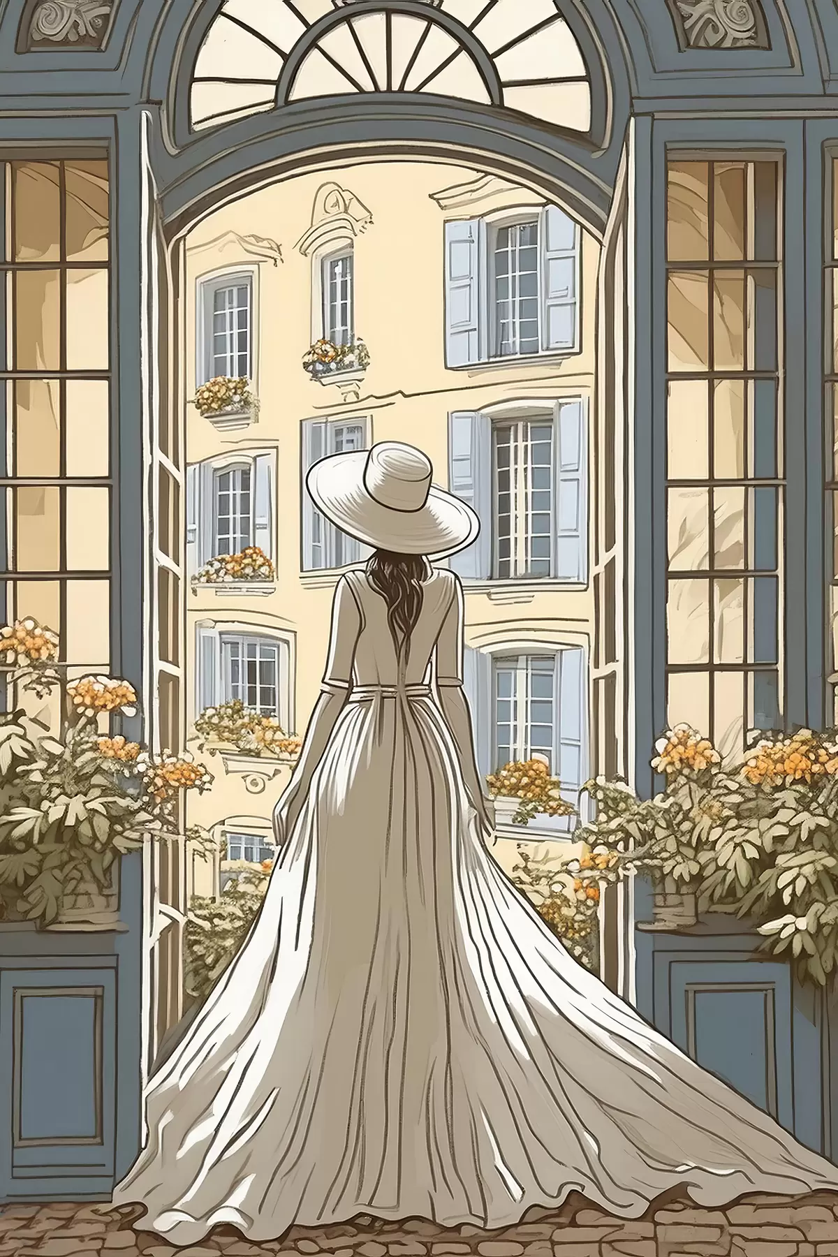 Cuadros silueta de una chica con un vestido blanco junto a la ventana Nr s39479