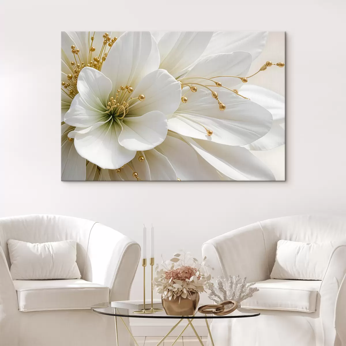Cuadros Un primer plano de una gran flor blanca con delicados pétalos Nr s39507