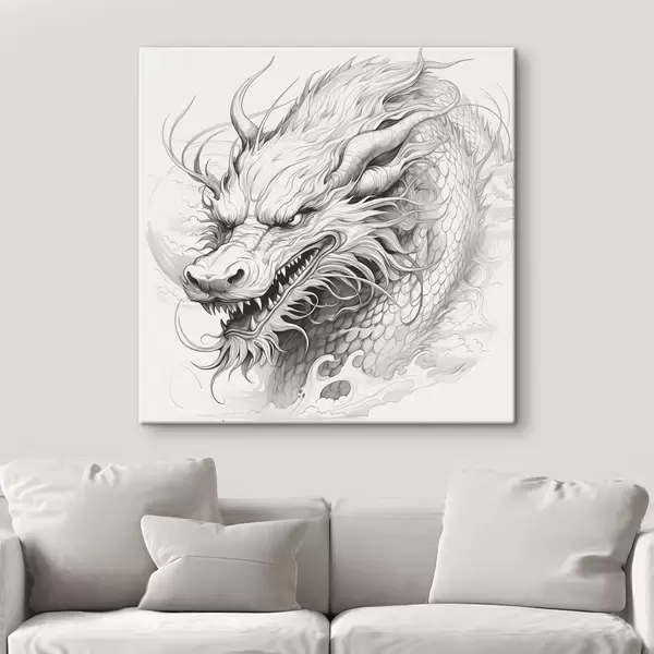 Cuadros Dibujo lineal de dragón de estilo chino monocromo Nr s39563