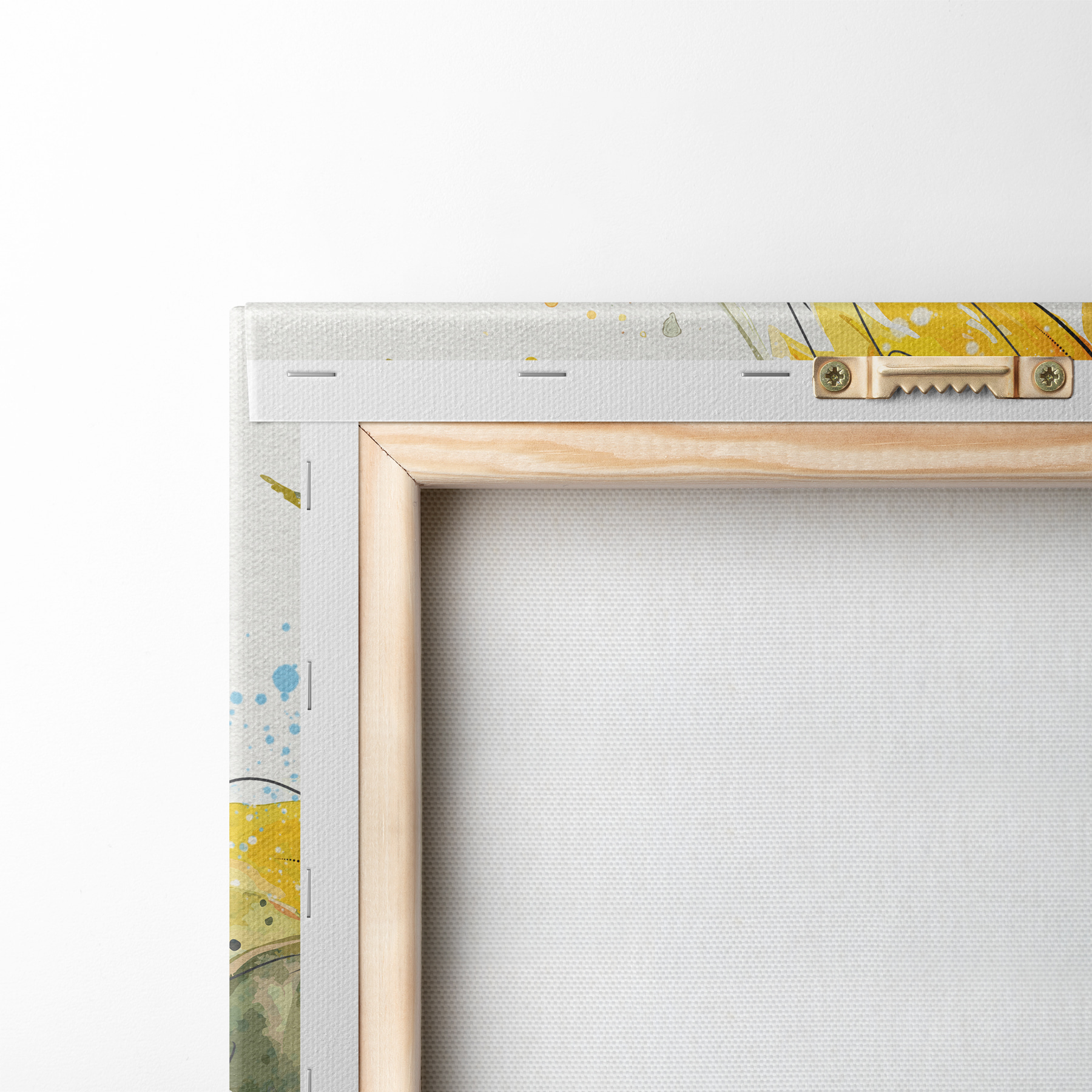 Vendemos cuadros en bastidor: se trata de un marco de madera sobre el que se extiende el lienzo. Este cuadro no necesita marco; puedes colgarlo directamente en la pared.