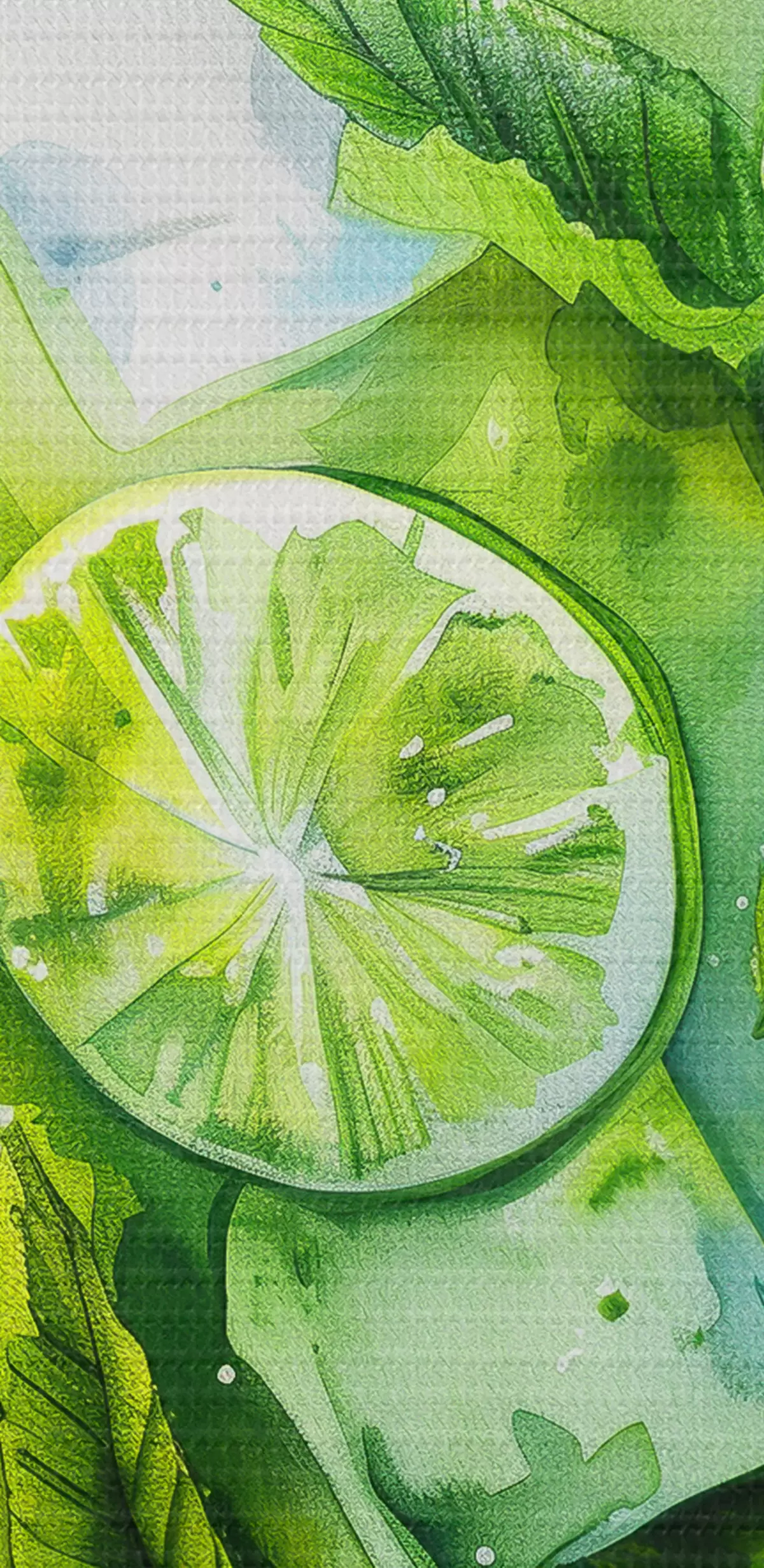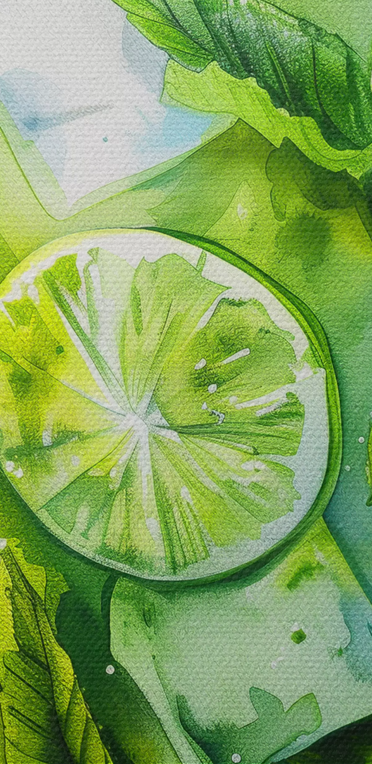 Cuadros Cóctel de verano acuarela, mojito, lima y menta, flores, colores verdes Nr s39712