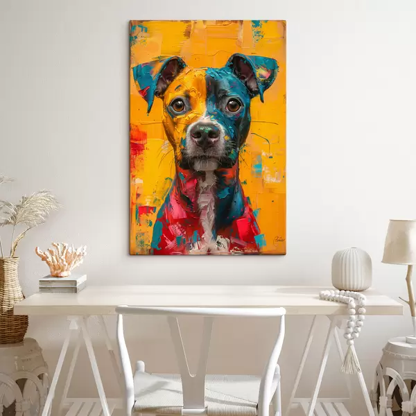 Cuadros Retrato de un Pitbull con pinceladas de óleo amarillas y azules Nr s39722