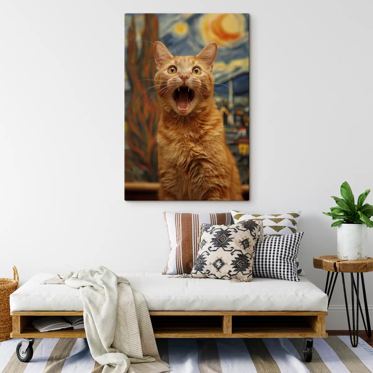 Cuadros Cuadro estilo Van Gogh de 'El grito' con un gato Nr s39724
