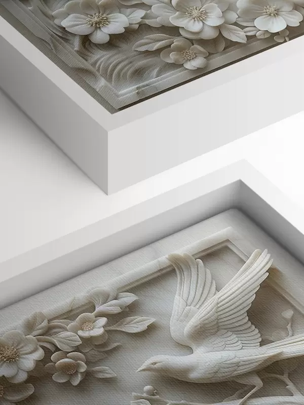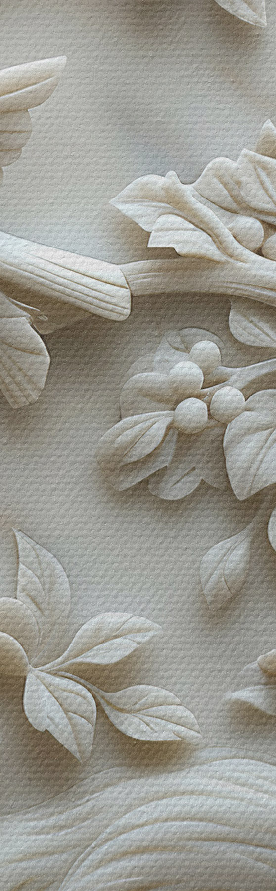 Cuadros Jardín de mármol blanco con bajorrelieve de pájaros y flores. Nr s39728