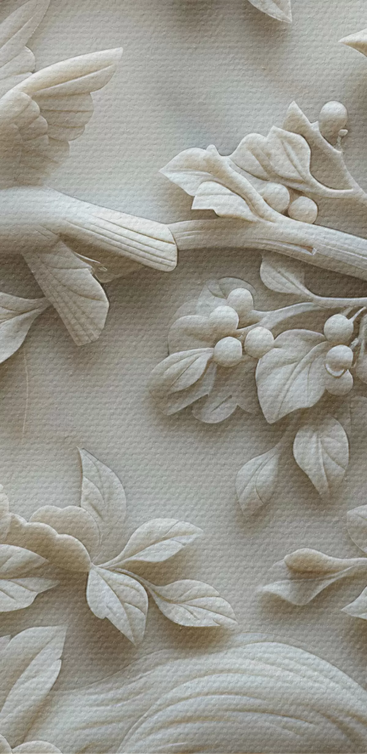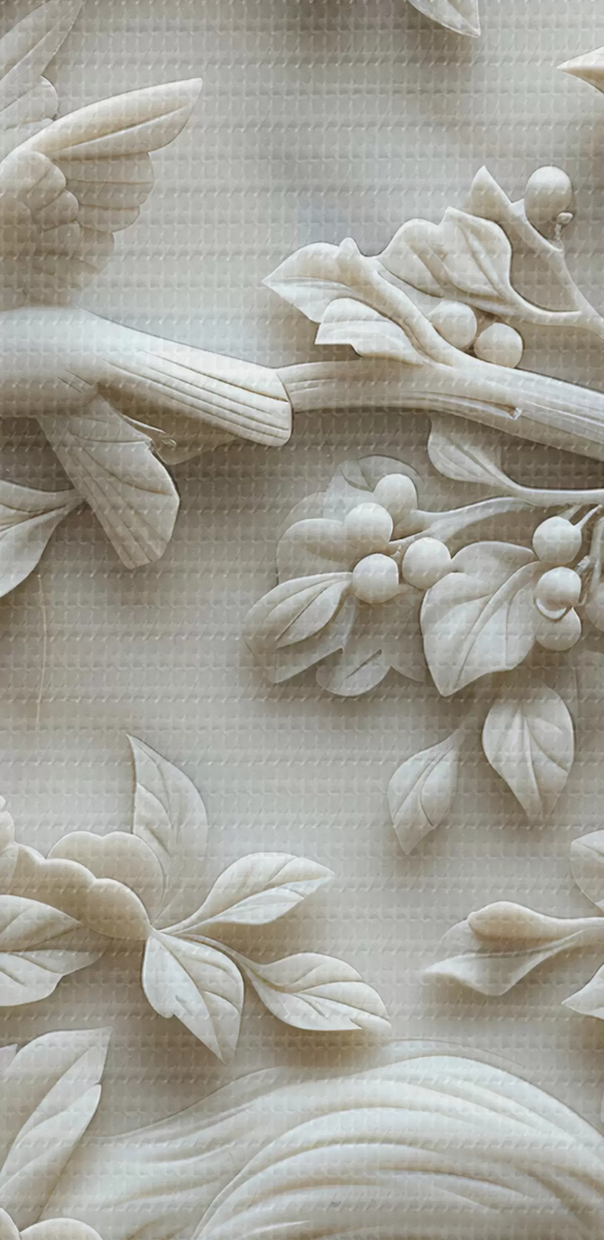 murales de pared Jardín de mármol blanco con bajorrelieve de pájaros y flores.  s39728