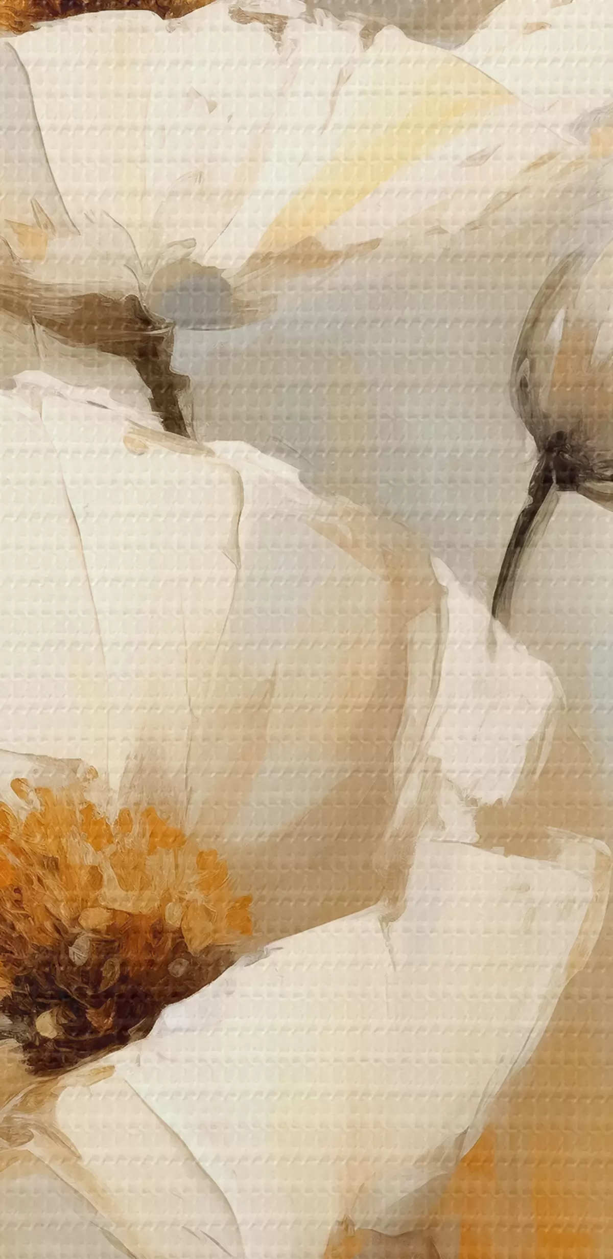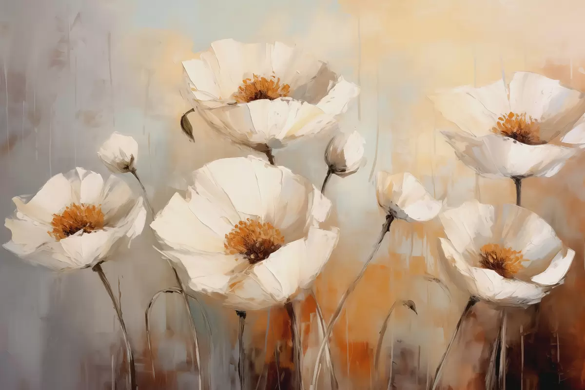 murales de pared Cuadro al óleo de amapolas blancas, color azul y naranja. s39815