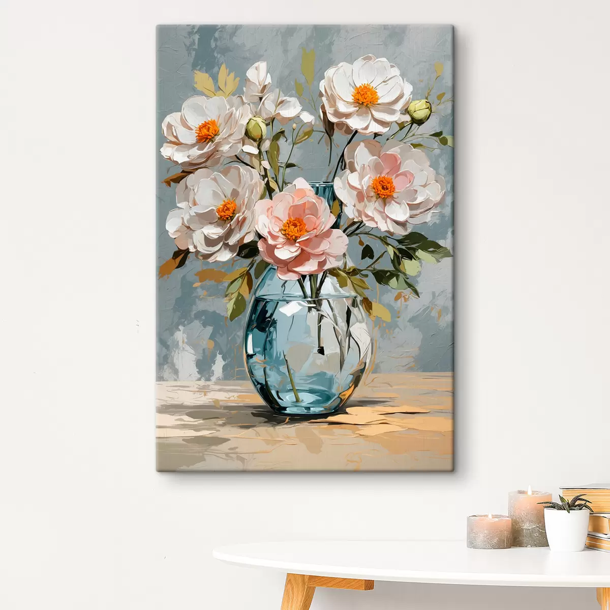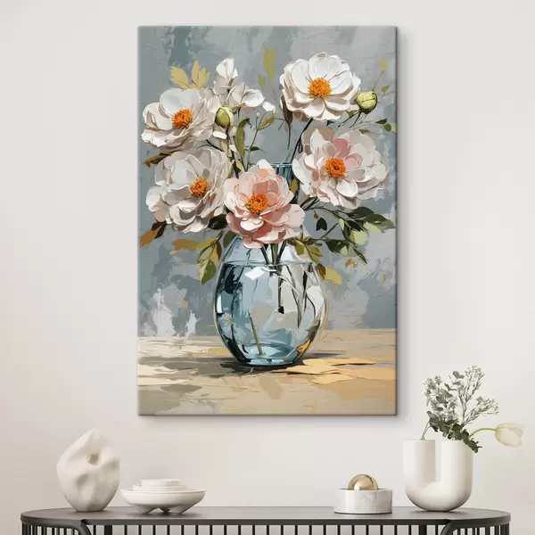 Cuadros Flores blancas en jarrón transparente. Nr s39850