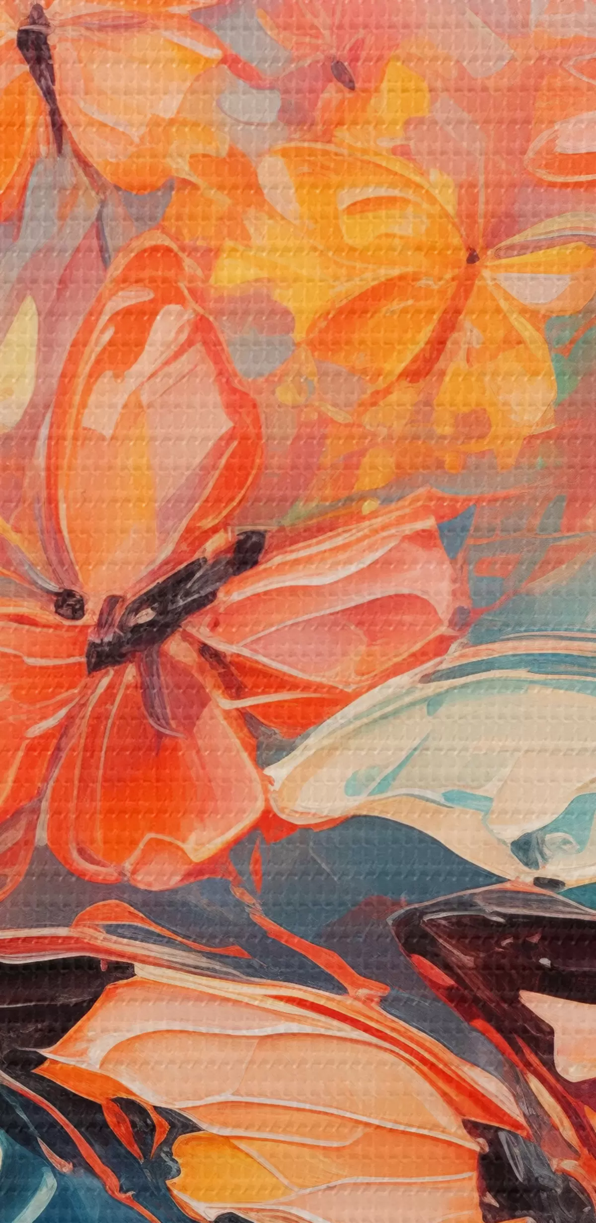 Cuadros Una bandada de mariposas volando sobre una pintura al óleo azul. Nr s39922