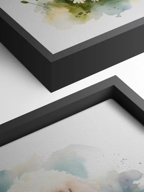 Cuadros Pequeño caniche blanco sentado en flores acuarela Nr s39928