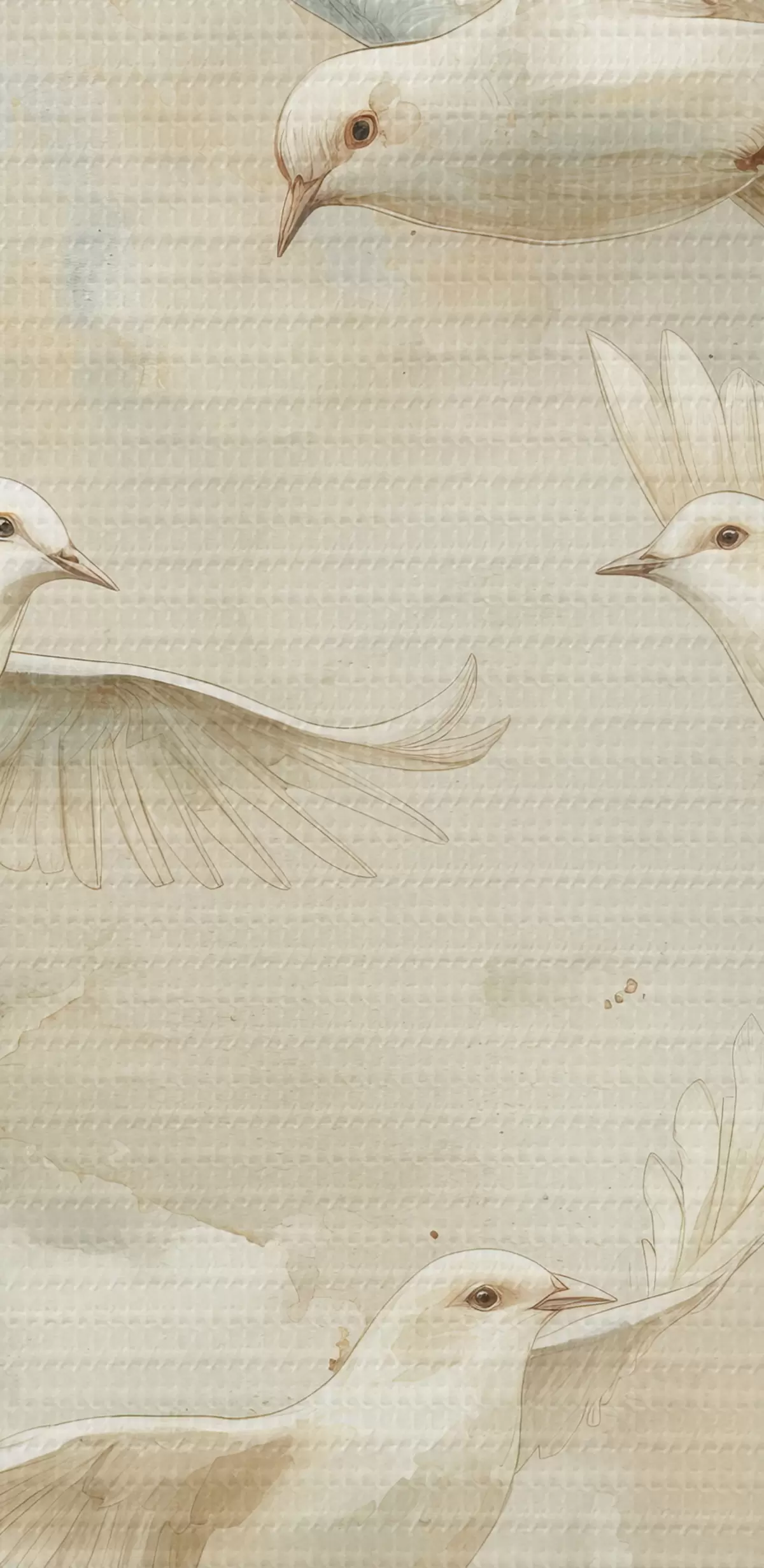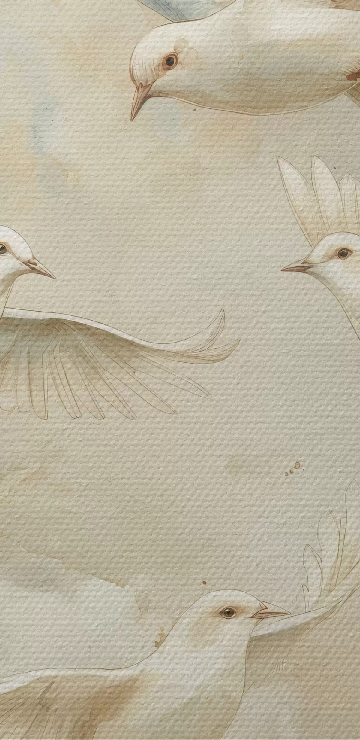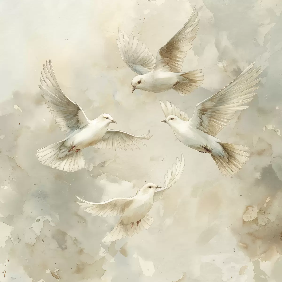 murales de pared Pájaros voladores de acuarela, colores beige y blanco suaves, palomas.  s39976