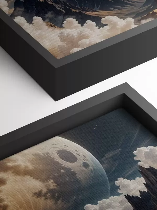 Cuadros Un paisaje surrealista con montañas cubiertas de nieve bajo una enorme luna llena, con nubes tenues. Nr s40147