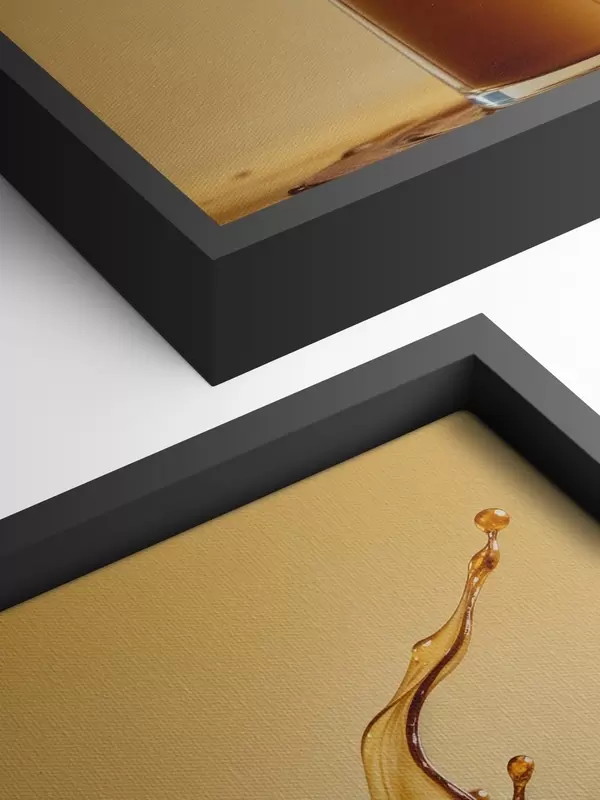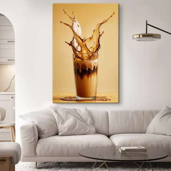 Cuadros Un vaso lleno de café con un efecto de salpicadura dramático que crea una imagen abstracta y dinámica. Nr s40165