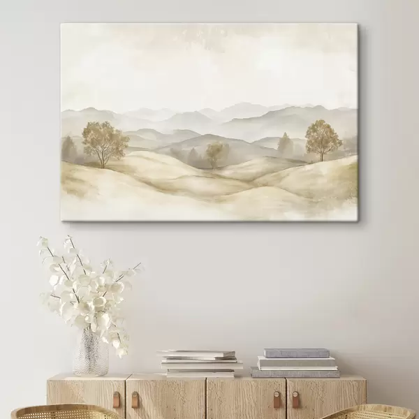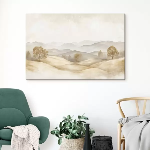 Cuadros Paisaje natural en paleta de colores beige, prado, árboles, dibujo de acuarela. Nr s40231