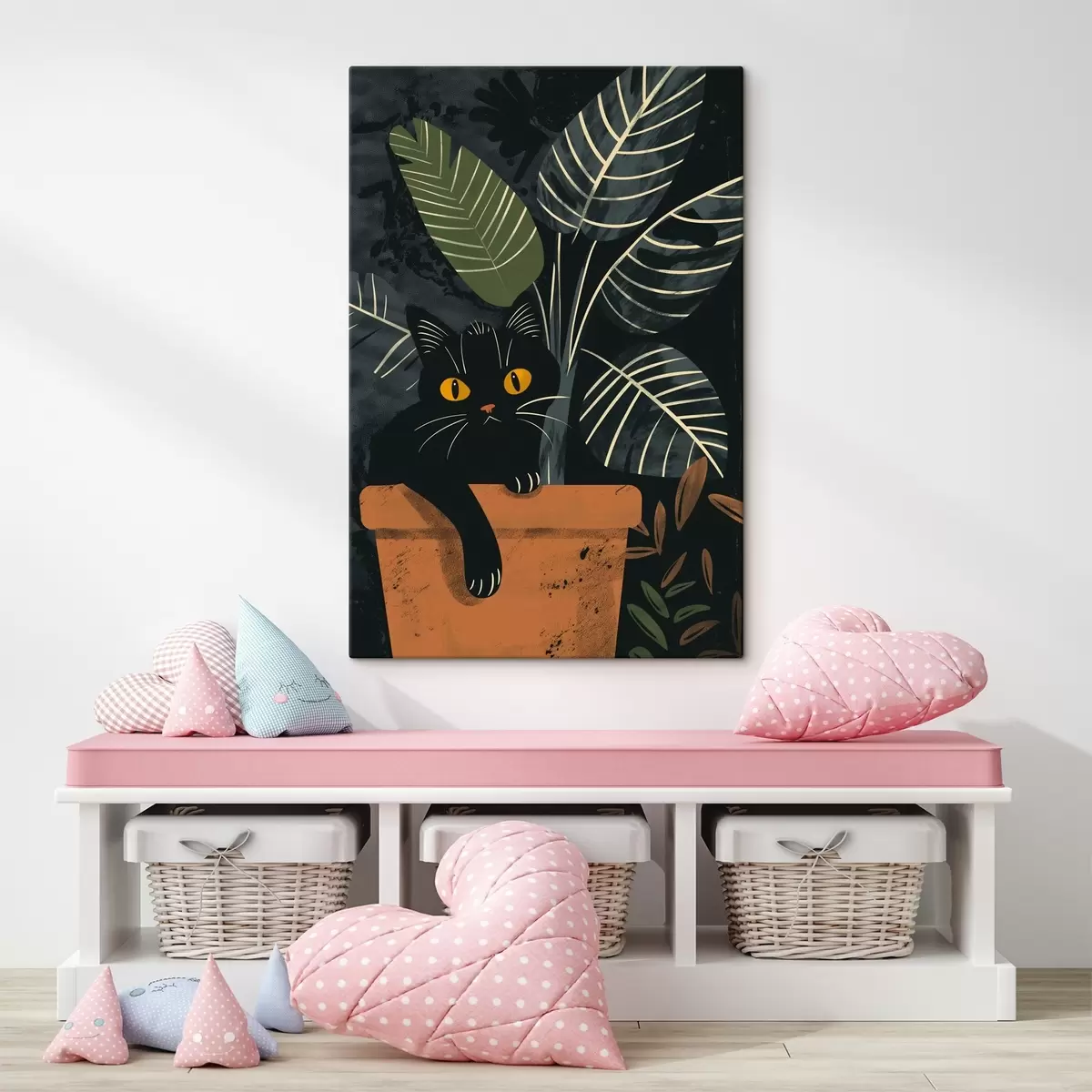 Cuadros Gato en una maceta con una flor Nr s40268