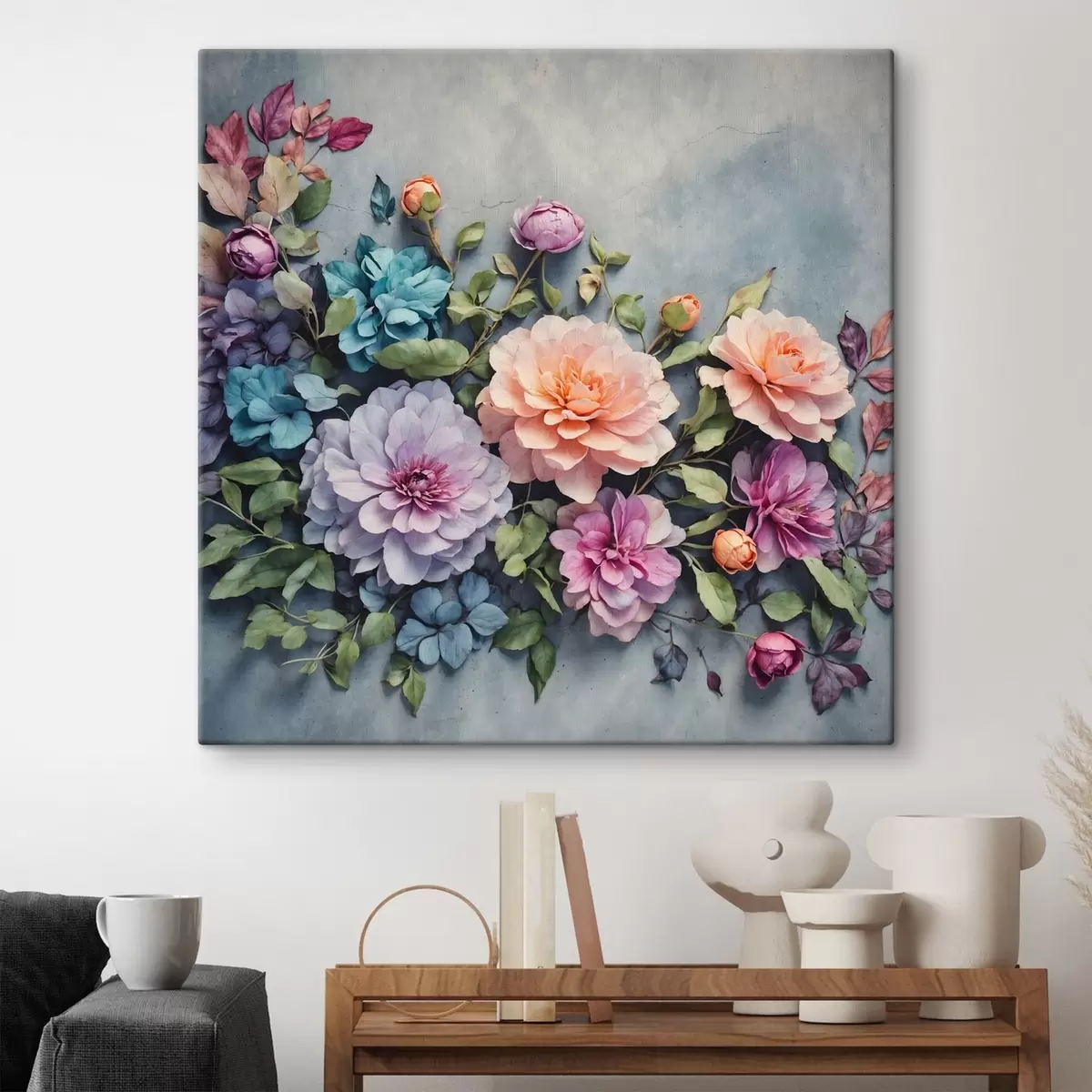 Cuadros Flores y hojas sobre fondo azul. Nr s40346