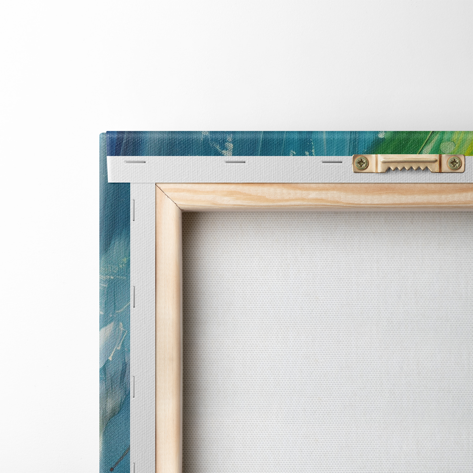 Vendemos cuadros en bastidor: se trata de un marco de madera sobre el que se extiende el lienzo. Este cuadro no necesita marco; puedes colgarlo directamente en la pared.