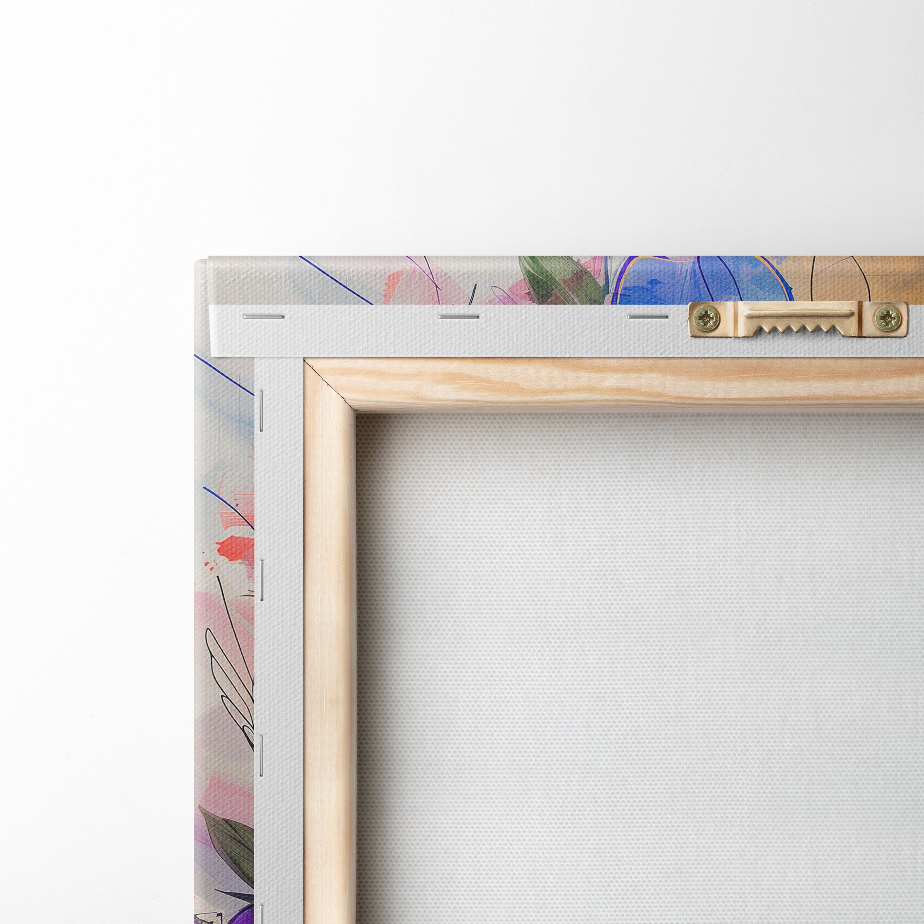Vendemos cuadros en bastidor: se trata de un marco de madera sobre el que se extiende el lienzo. Este cuadro no necesita marco; puedes colgarlo directamente en la pared.