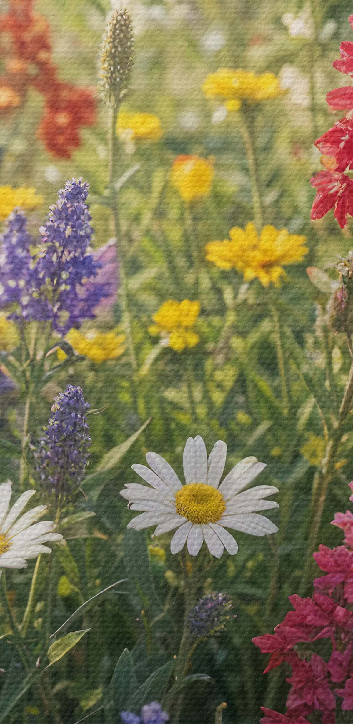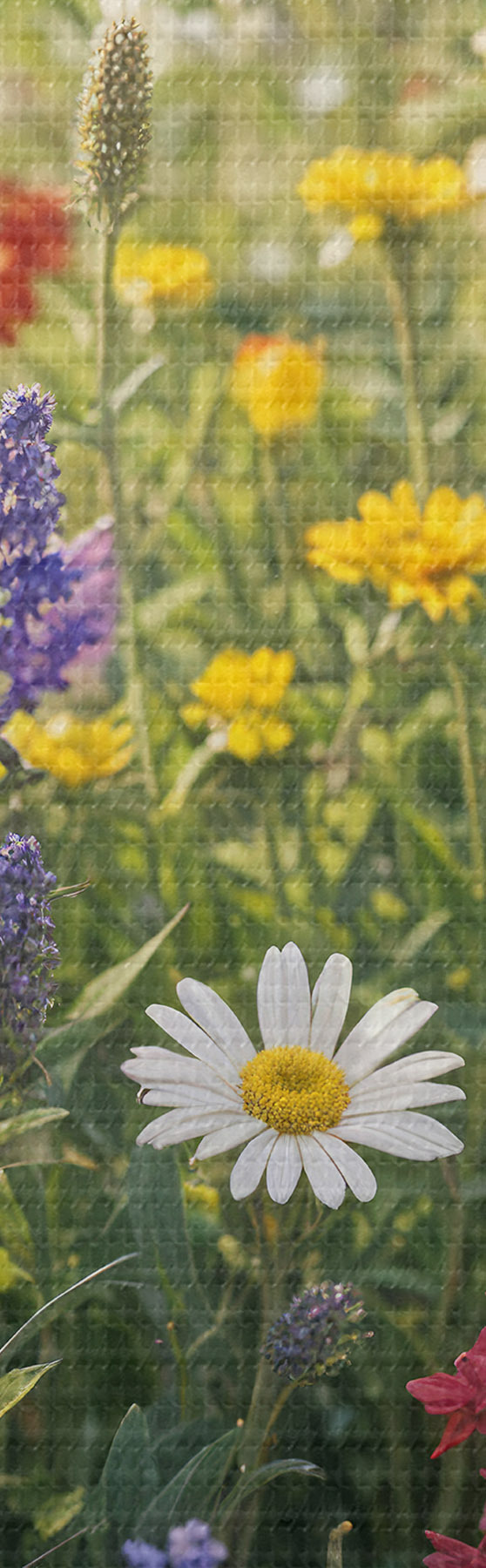 Cuadros Un prado colorido de flores silvestres con varias flores florecientes, incluidas margaritas, lavanda y flores rojas. Nr s40390