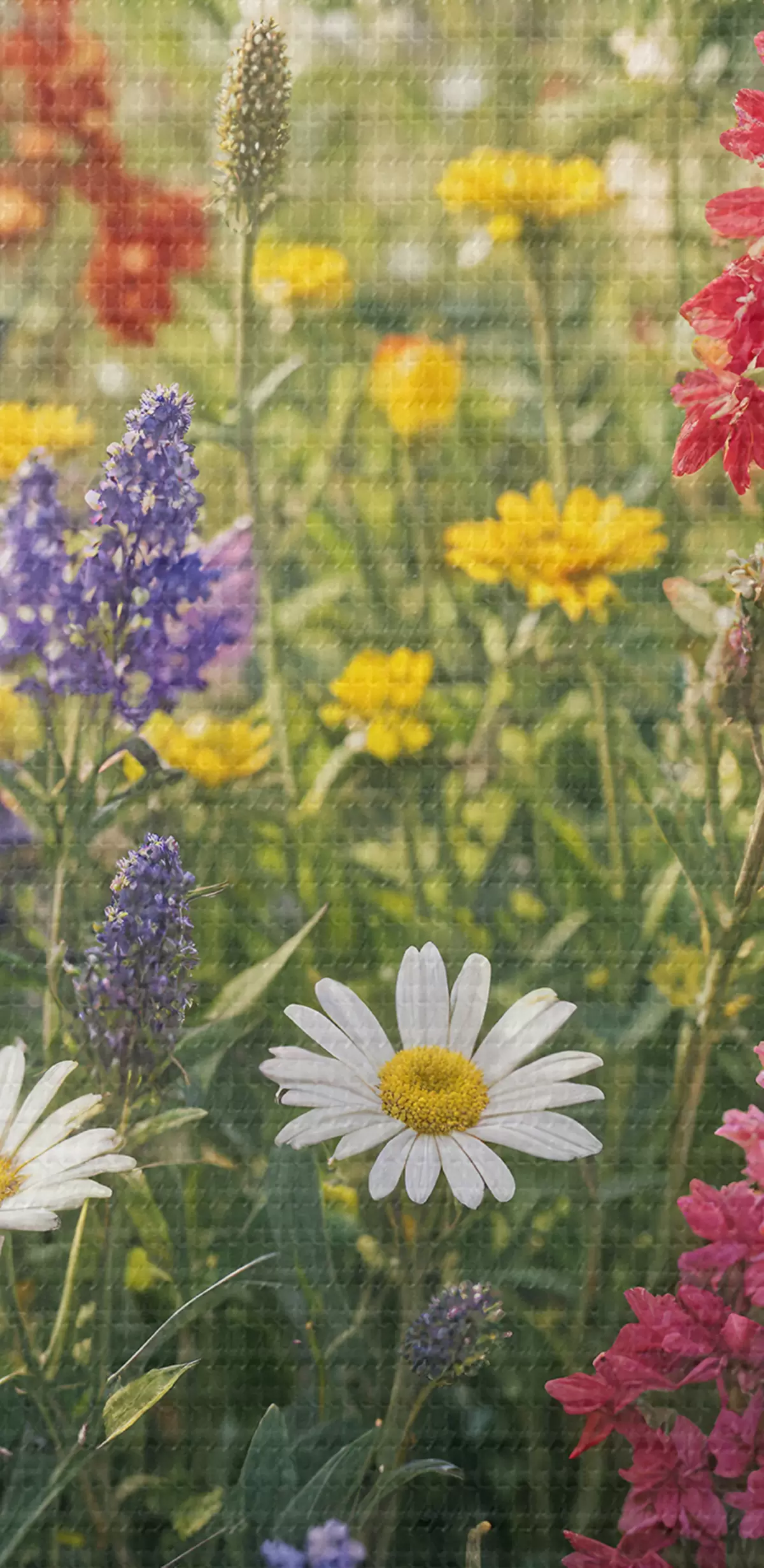 murales de pared Un prado colorido de flores silvestres con varias flores florecientes, incluidas margaritas, lavanda y flores rojas. s40390