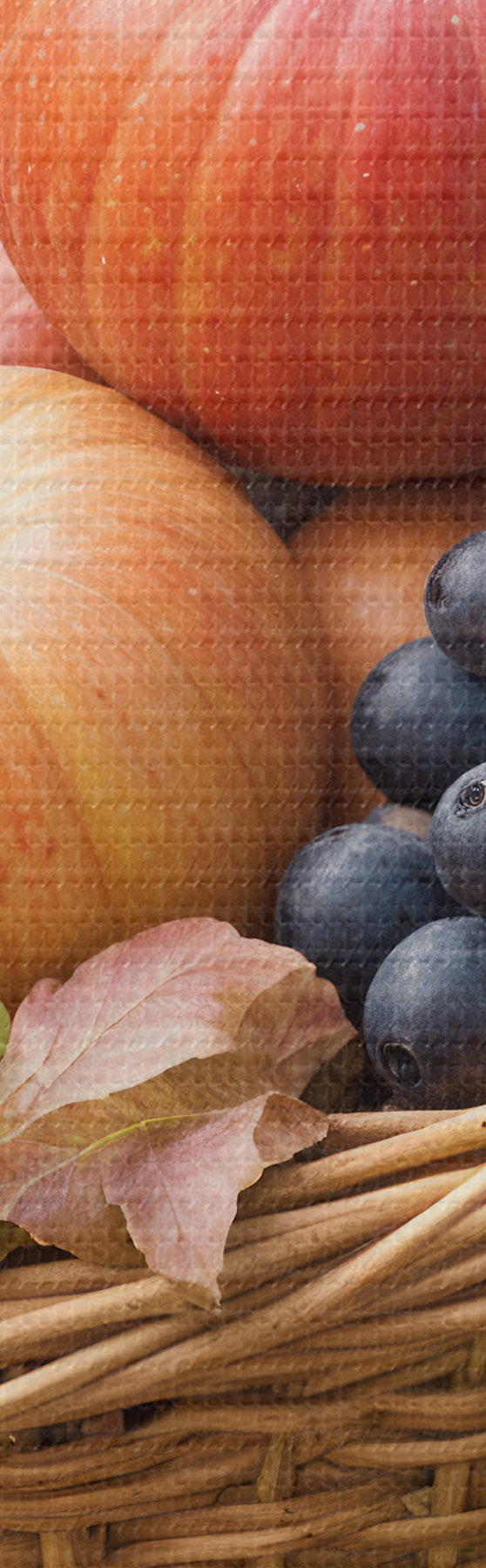murales de pared Una canasta llena de diversas frutas de otoño, incluidas manzanas, uvas y peras, rodeadas de hojas caídas. s40409