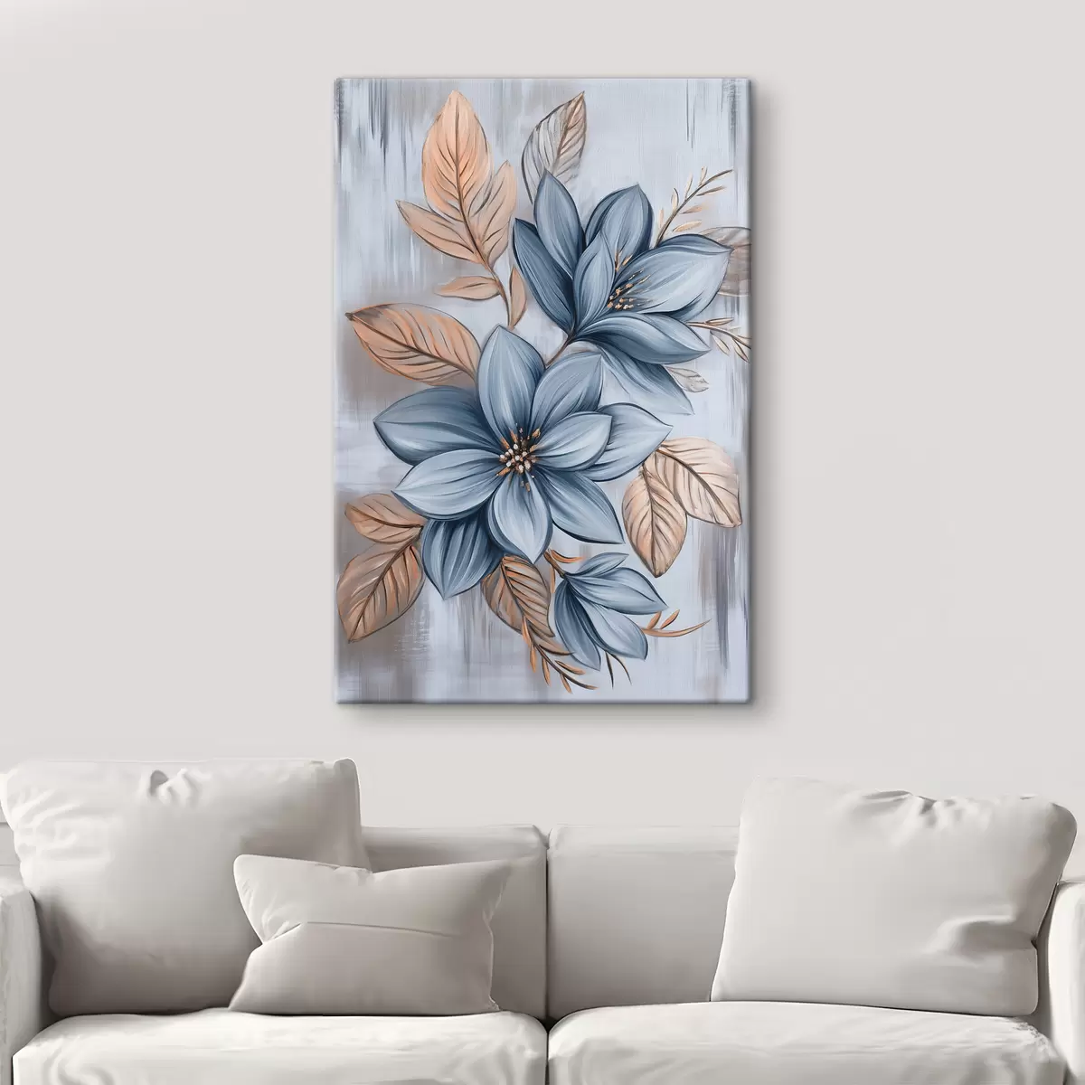 Cuadros Flores azules sobre fondo gris. Nr s40453