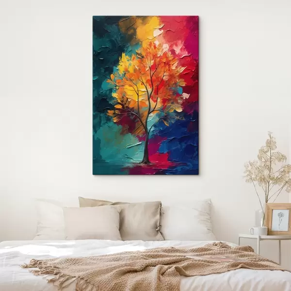 Cuadros Árbol multicolor sobre fondo acrílico abstracto. Nr s40459