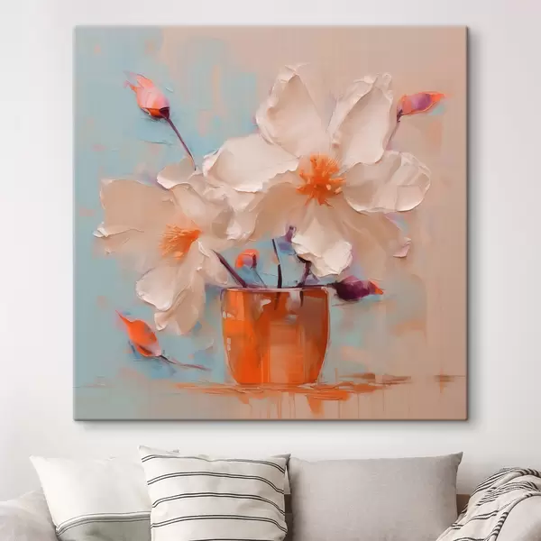 Cuadros Narcisos en jarrón, blanco, naranja, beige, azul. Nr s40520