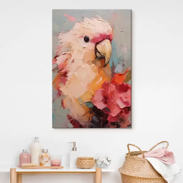 Cuadros Retrato de un loro cacatúa, color rosa, rojo, beige y gris. Nr s40525