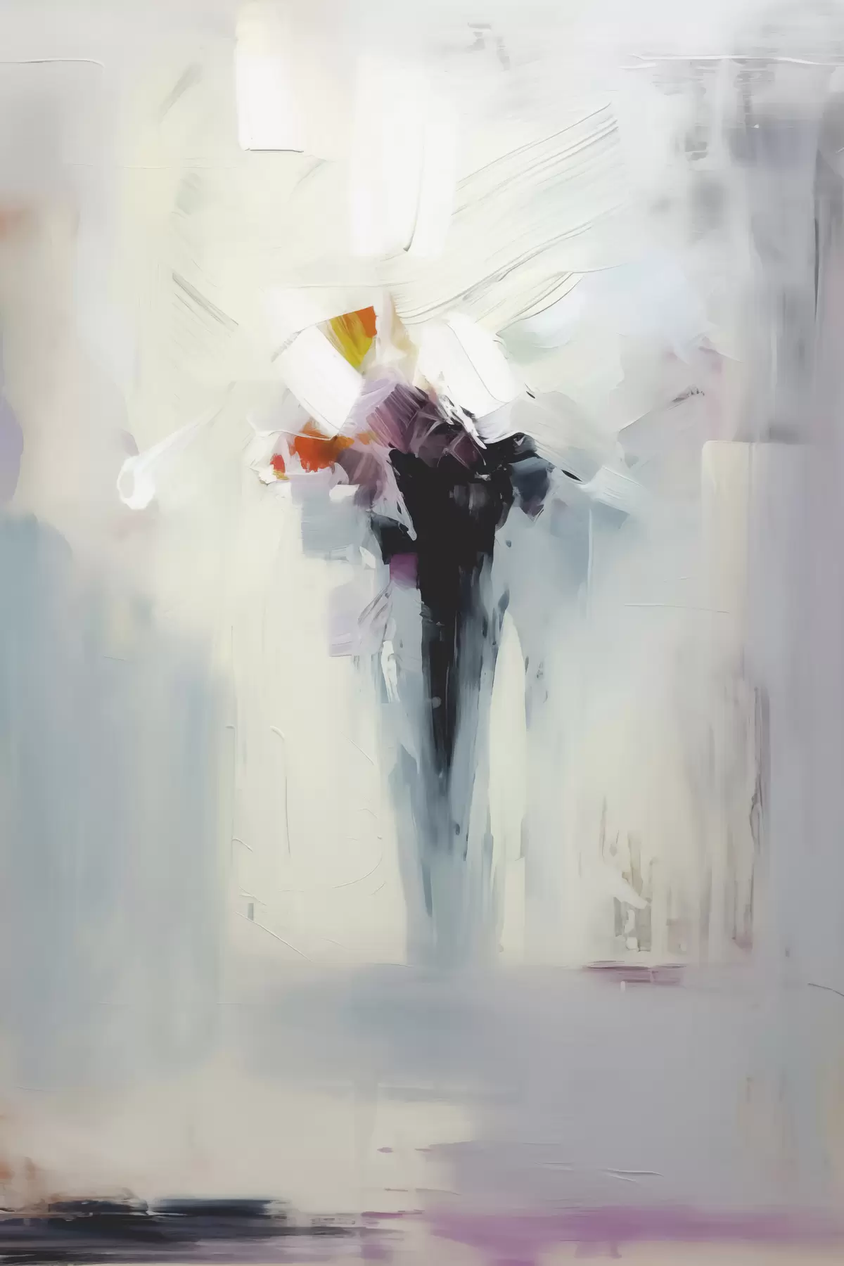 Cuadros Abstracción astral, mancha negra sobre fondo blanco-gris, imitación de pinceladas Nr s40526