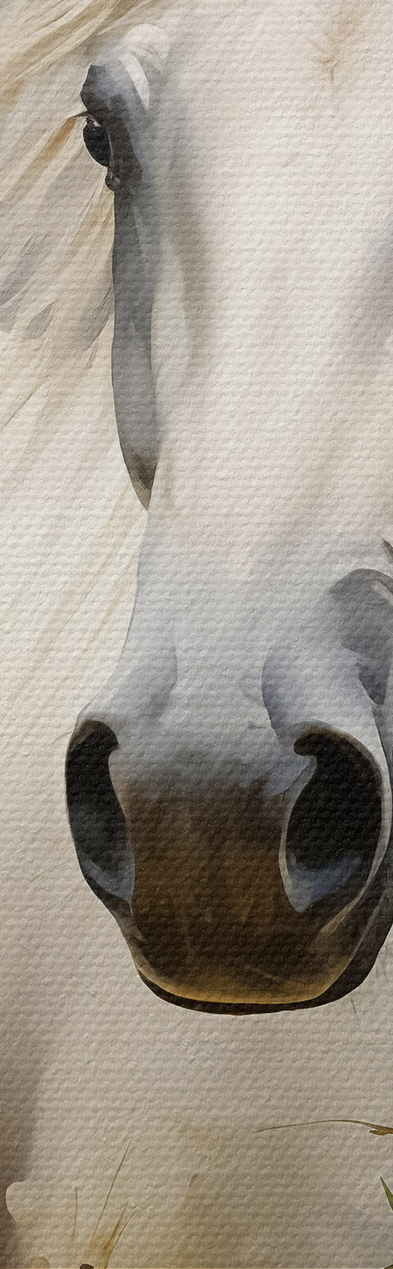 Cuadros Caballo blanco en la hierba entre margaritas. Nr s40533