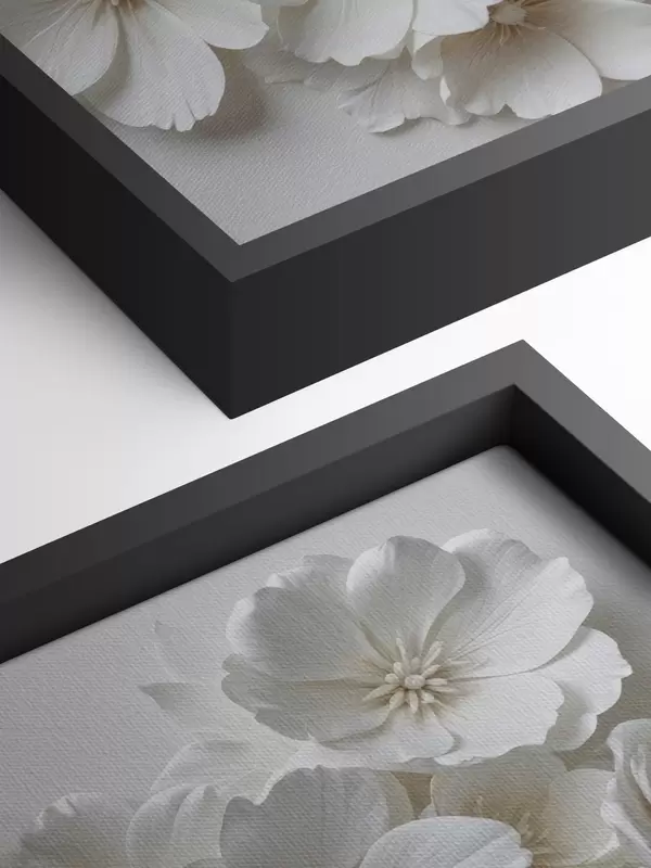 Cuadros Flores blancas con delicados pétalos dispuestos en un hermoso patrón floral sobre un fondo claro. Nr s40548
