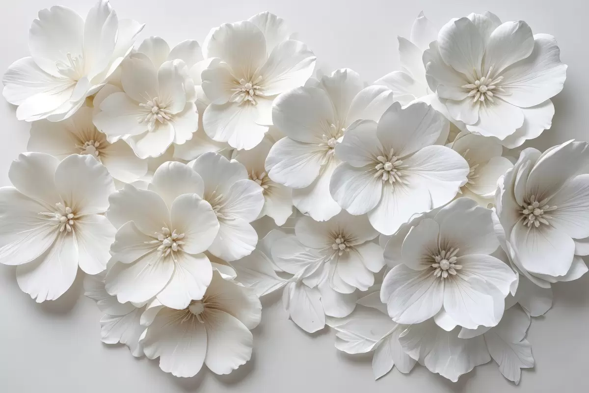 murales de pared Flores blancas con delicados pétalos dispuestos en un hermoso patrón floral sobre un fondo claro. s40548