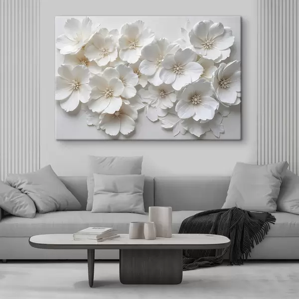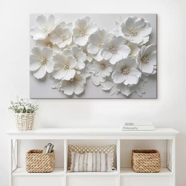 Cuadros Flores blancas con delicados pétalos dispuestos en un hermoso patrón floral sobre un fondo claro. Nr s40548