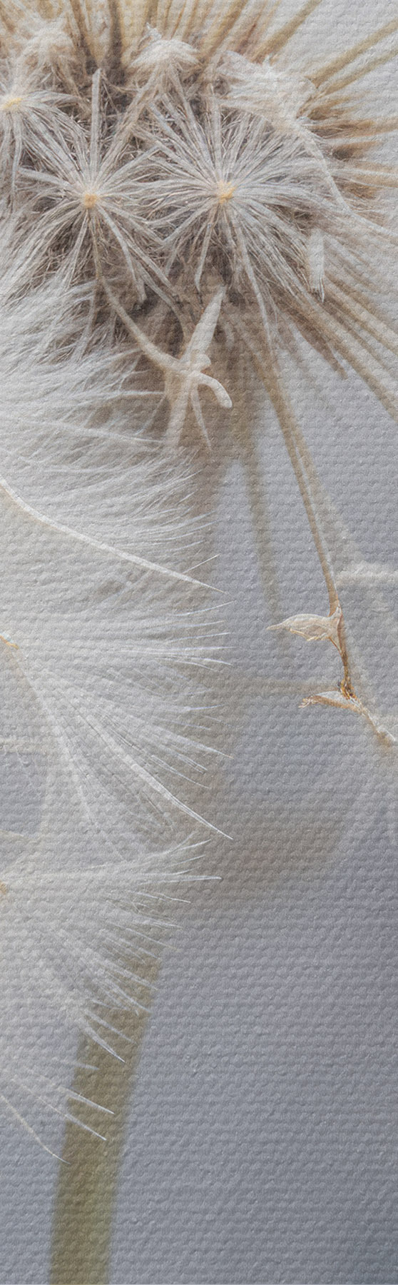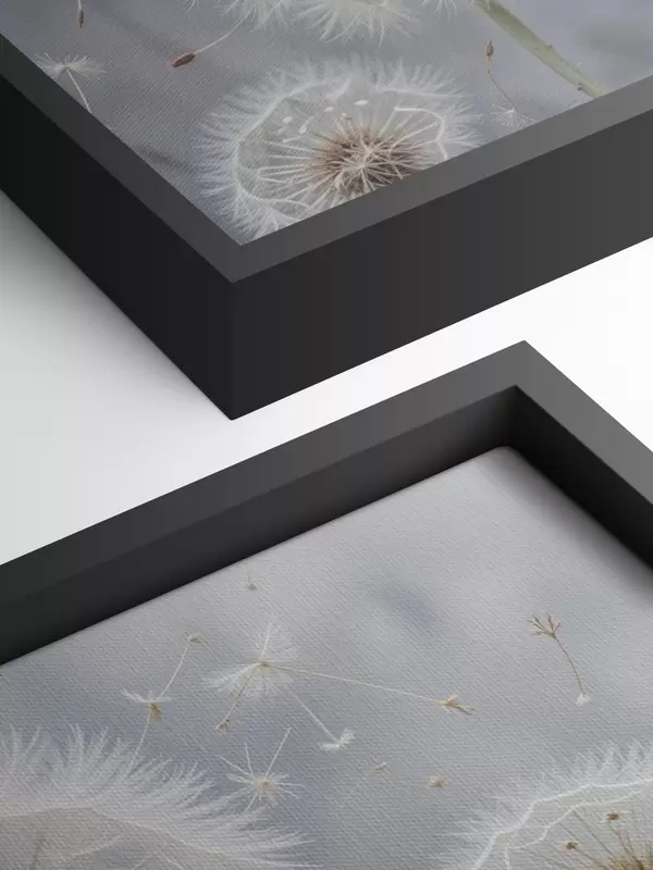 Cuadros Flores de diente de león blancas con semillas esponjosas sobre un fondo gris borroso Nr s40556