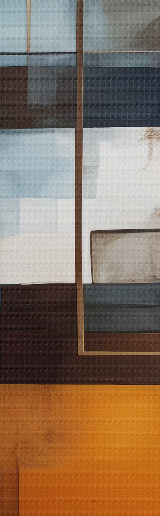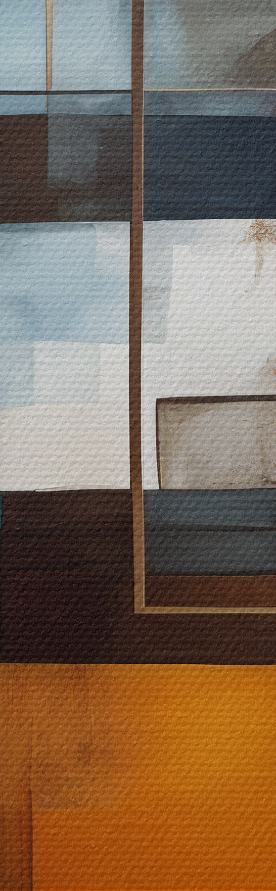 Cuadros Formas geométricas abstractas en tonos de azul, naranja y marrón que crean una composición minimalista moderna. Nr s40563